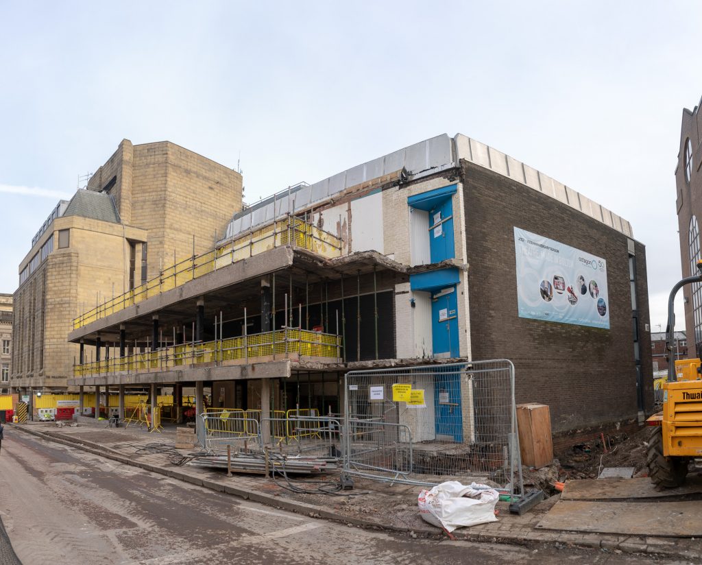 In August 2018 work got underway on a major refurbishment of the Octagon Theatre. Bolton Documentary Photography was commissioned to produce a visual record of this rebuilding project, the aim being to create a comprehensive record from start to finish, culminating in the reopening of the theatre in late autumn 2020 (a launch-date subsequently delayed due to the covid pandemic).